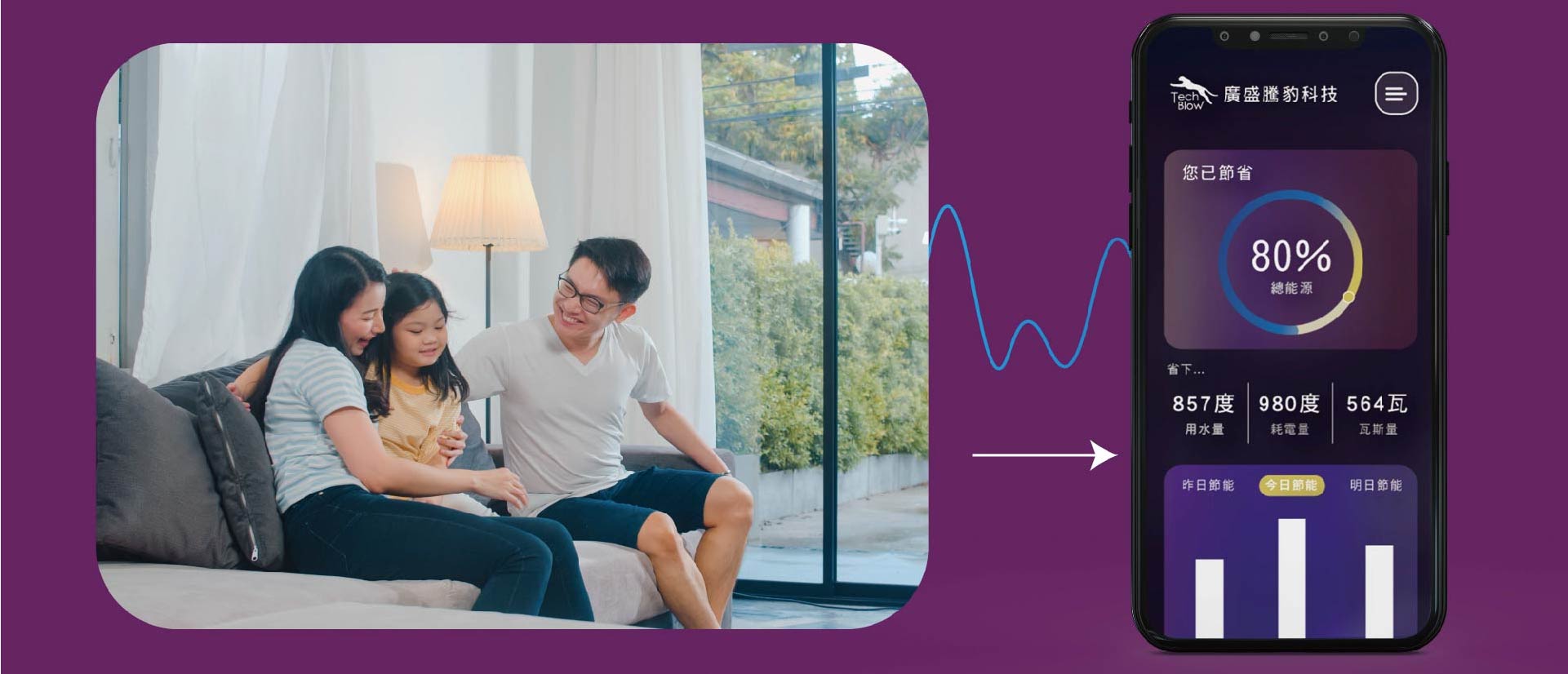 直接智慧升級家中原有家電,透過遠端監控設備開關情況,透過環境監測並智慧調節家電設備,助您有效節省能源的浪費,。